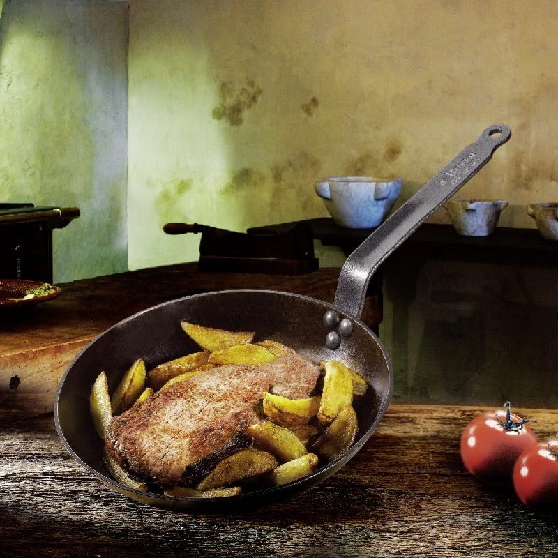 Mineral B Element Lyonnaise Bratpfanne aus De Käufern. Eine runde Bratpfanne, die mit dem Mineral B-Elemente-Serie gehört, die Kohlenstoff-Stahlerzeugnisse, die ein umweltfreundlichen und hochwertigen Materialien mit langer Lebensdauer sind. Anstelle von Teflon oder Keramik-Beschichtung, die Pfanne hat eine geschützte Oberfläche mit Bienenwachs, den Ofen auf 200 ° C wird die Pfanne funktioniert auf allen Wärmequellen bei hohen Temperaturen und in Kochen ermöglicht, einschließlich dem Induktionsherds.