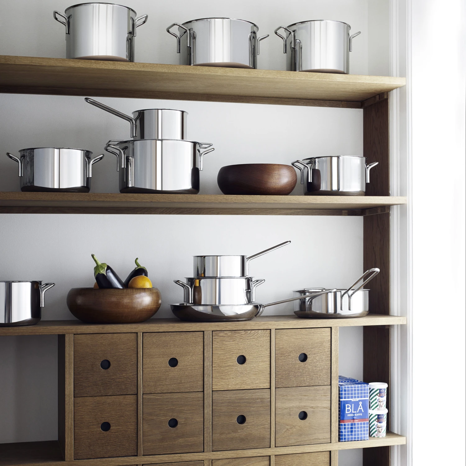 Mit diesem hochwertigen Kochtopf-Set von Eva Solo kommen Sie weit! Eva Solos Kollektion Eva Trio Edelstahl glänzt mit einer noblen Edelstahloptik. Die Sandwichkonstruktion sorgt dafür, dass die Hitze gleichmäßig am Boden und an den Wänden verteilt wird. Design von Ole Palsby. Im Set sind 3 Töpfe und ein Pastaeinsatz inkludiert.